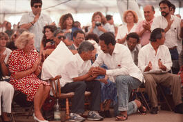 1988. Ethel Kennedy speaks with Helen Chavez, wife of Cesar,...