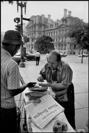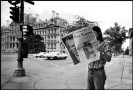 USA. Washington, D.C. August 9, 1974. Man reading a newspaper...