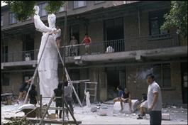 CHINA. Bejing. 1989. In the courtyard of the school, a bust of...