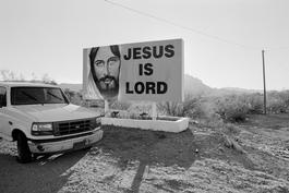 USA. ARIZONA. Inspiration. Jesus sign on the outside of the town....