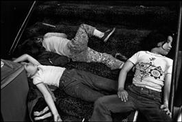 USA. New York. 1976. Woman sunbathing on a tar roof.