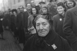 FRANCE. Paris. 1944. Waiting in line near a grocery shop.