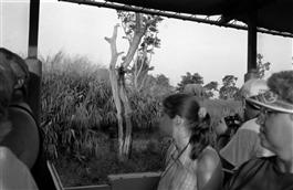 USA. Florida. Animal Kingdom Theme Park. Tourists ride through...