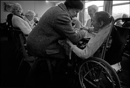 G.B. ENGLAND. Liverpool. A Home Help worker attempts to console...