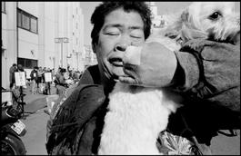 JAPAN. Asakusa. 1996. A woman hugging her dog.