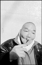 JAPAN. Sanya. 1996. Homeless man smoking.