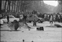 FRANCE. Paris. Overturned car, night of 10th - 11th May 1968....