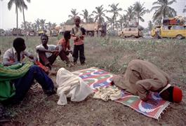 Africa. Ghana. Bread distributed to refugees from Nigeria returning...