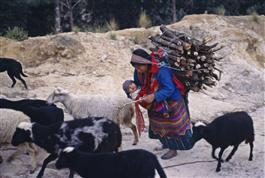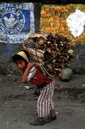 Santiago Atitlán. 1997. A boy carries firewood home.