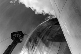 GB. ENGLAND. Liverpool. Re-spraying the 'Channel Conveyor' blue,...