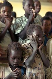 ANGOLA. Children displaced by the war eat food supplied by World...