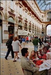 ITALY. Milan. (Milano). Outdoor cafe in the fashionable shopping...