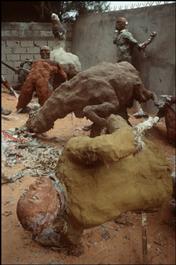 SENEGAL. Dakar. 1998. Sculptor Ousmane SOW working on "The victory...