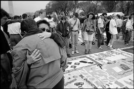USA. Washington, D.C. 1993. People embrace in front of the AIDS...