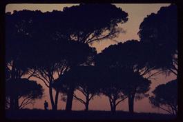 USA. Point Reyes Peninsula, California. 1975. A lone figure walking...