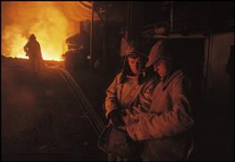 Silesia region. City of Katowice. Steel workers in the "Huta...