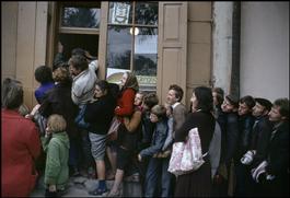 POLAND. Bodzentyn, near kielce. People waiting for bread.
