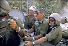 General Ariel SHARON, and General Moshe DAYAN, at the bridgehead...