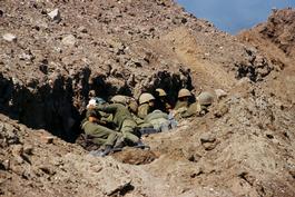 SINAI. October 7, 1973. Israeli forces at a forward postion on...