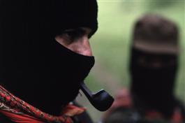 1994. Sub Commandante MARCOS in a Zapatista village.