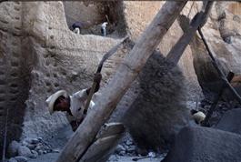 Aguacantenango. Miguel, Victoria's older son, in his hut with...