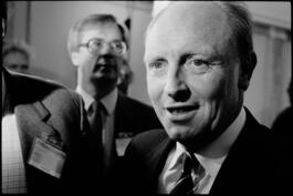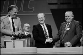 GB. Brighton. 1986. Neil Kinnock and TUC leader Norman Willis....