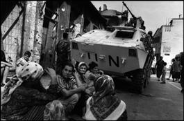 Bosnia Herzegovina. 1993. Mostar citizens preventing UN soldiers...