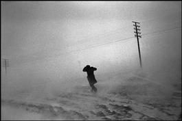 ALBANIA. 1994. Snow blizzard on the road to Korce.