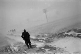 ALBANIA. 1994. Snow blizzard on the road to Korce. An Albanian...