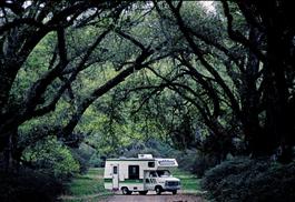 USA. Louisiana. 1985. Caravan in an Oak Alley in Northern Louisiana....