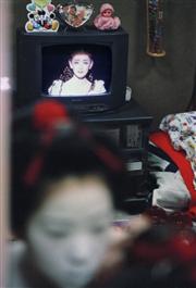 Japan. Kyoto. Maiko-san watching tv. 1999.