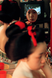 JAPAN. Kyoto. Maiko-san making up. 1999.