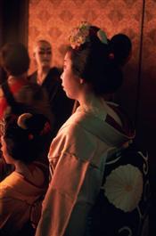 Japan. Kyoto. Geiko-san waiting outside their Oehaya. 1999.