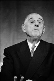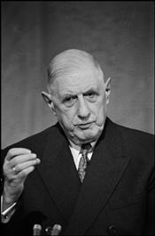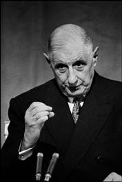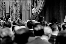 Charles DE GAULLE, President of the French Republic, giving a press conference.