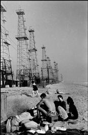 USA. California. Los Angeles. 1947. A beach on the oilfields....