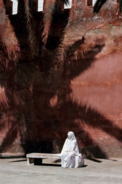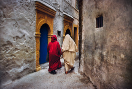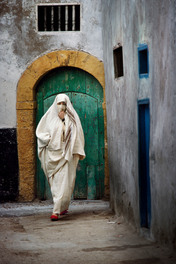 MOROCCO. 1988. Woman in white walks into bookstore.