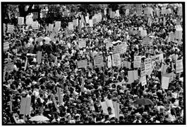 In the Summer of 1963, a single event captured the attention of the United States and the world: the March on Washington. More than 250, 000 people came to the nation's capital to demand equality for blacks and to urge Congress to pass pending civil rights legislation. More than 2, 000 "freedom buses" and thirty "freedom trains" converged in Washington, bringing more than a quarter million marchers, over 60, 000 of them white. The march was the largest demonstration of its kind in the history of the United States