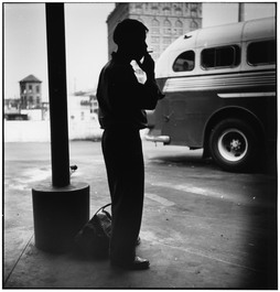 USA. Pittsburgh, Pennsylvania. October, 1950. Bus terminal. Loading...