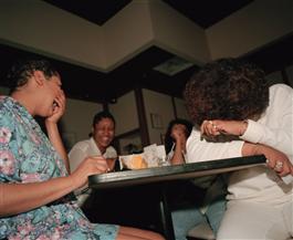 USA. Minneapolis. Shopping mall. Fat kids eating junk food at...