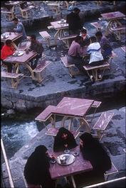 IRAN. Isfahan. 1998. Tea house by Sioseh Pol bridge.