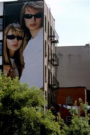 USA. New York City. 1999. Billboard painters work on a Sixth...
