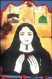 PAKISTAN. Lahore. Hand-painted poster of a veiled woman praying....