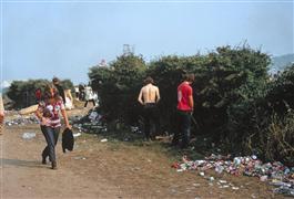 GB. Isle of Wight Festival. 600,000 people create a lot of rubbish....