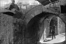 ISRAEL. Jerusalem. 1976. An Israeli soldier on guard outside...