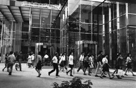 14. Businessmen at lunchtime near Raffles Square in the city...