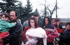 These pictures show refugees from Prekaz, who were forced to flee the village and hide in woodland & neighbouring houses; and the Women's demonstration in Pristina on 8th march in protest at the Serb police action.