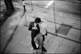 UK. London. 1960. Couple kissing on the street.