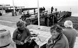 UK.Wales. General. Reading on the seafront in Barmouth.
