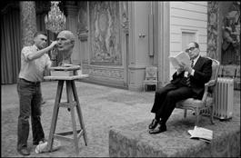 FRANCE. Paris. François MITTERRAND posing for his bust by sculptor Daniel DRUET.