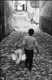 ITALY. Sicily,Roccapalumba: Child carrying a chiken